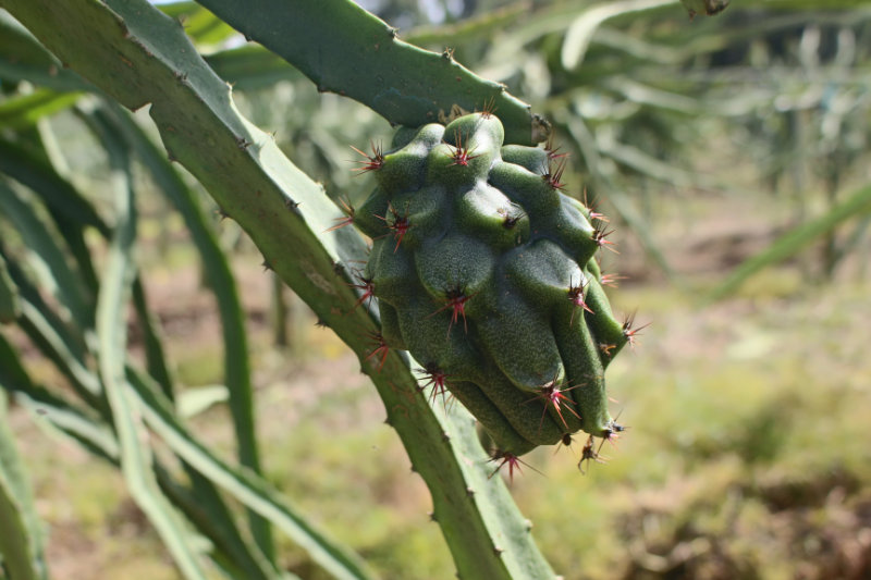 Se la realiza a mano con el equipo de protección necesario, habitualmente una persona va desespinando y otra cortando el fruto, para minimizar el riesgo de contaminación biológica esta actividad se la realiza con un lavado de manos periódica y los implementos de cosecha son lavados y desinfectados.